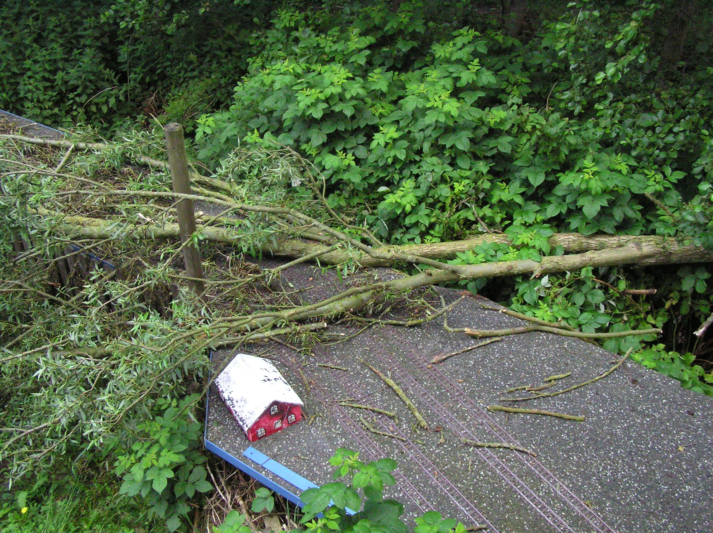 Das bißchen Zeit, welches beim Wohnungsumbau für die Modellbahn übrig blieb wurde benötigt um die Schäden durch den Baum zu beseitigen.