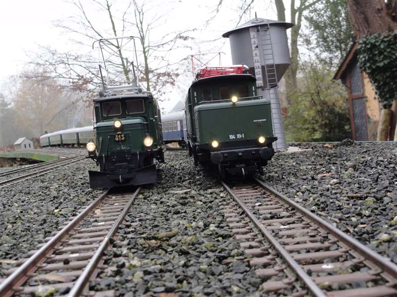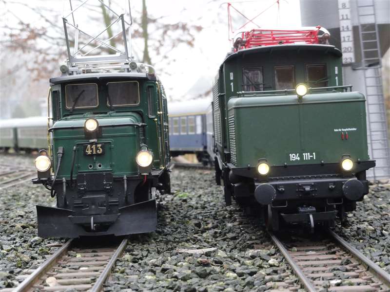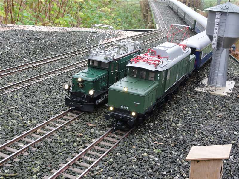Ich habe gleich mal alle meine DB-Reisezugwagen angehängt und eine Probefahrt gemacht. Nach nicht einmal einer Runde blieb die Lok stehen mit blinkenden Lichtern. Eine Reaktivierung der Lok war nur durch Stromlos setzten der Lok für min. 2Min möglich. Ich ließ die Lok dann mit kürzeren Zügen fahren. Dieses Abschalten konnte ich allerdings selbst mit 3 Güterwagen nach einiger Zeit feststellen.