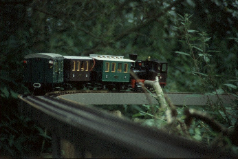 1986 kam das erste mal die Idee auf eine Stationäre Anlage auf zu bauen. Diese Idee wurde schnell umgesetzt. Sie wurde in den Garten gesetzt. Der Bahnhof entstand auf 2 Eternith-Platten, die auf ein Sandbett gelegt wurden. Die Strecke wurde auf mit Dachpappe belegten Holzplatten, die auf Ziegelsteinen gelagert wurden, geschraubt.